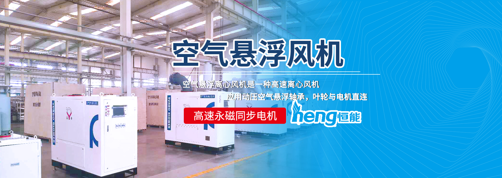 山東恒能環(huán)保能源設(shè)備有限公司代理的富源牌空氣懸浮離心風機是一種高速離心風機,應用動壓空氣懸浮軸承,葉輪與電機直連,高速永磁同
